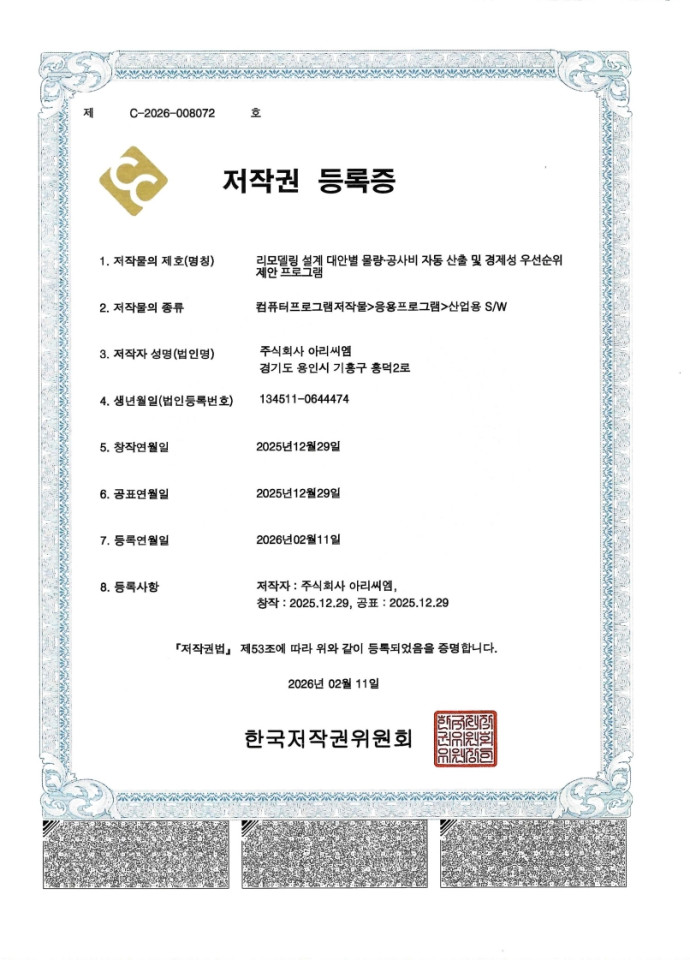 (S/W등록) 리모델링 설계 대안별 물량·공사비 자동 산출 및 경제성 우선순위 제안 프로그램