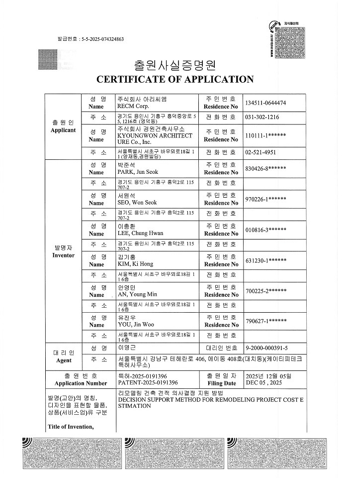 (특허출원) 리모델링 건축 견적 의사결정 지원 방법