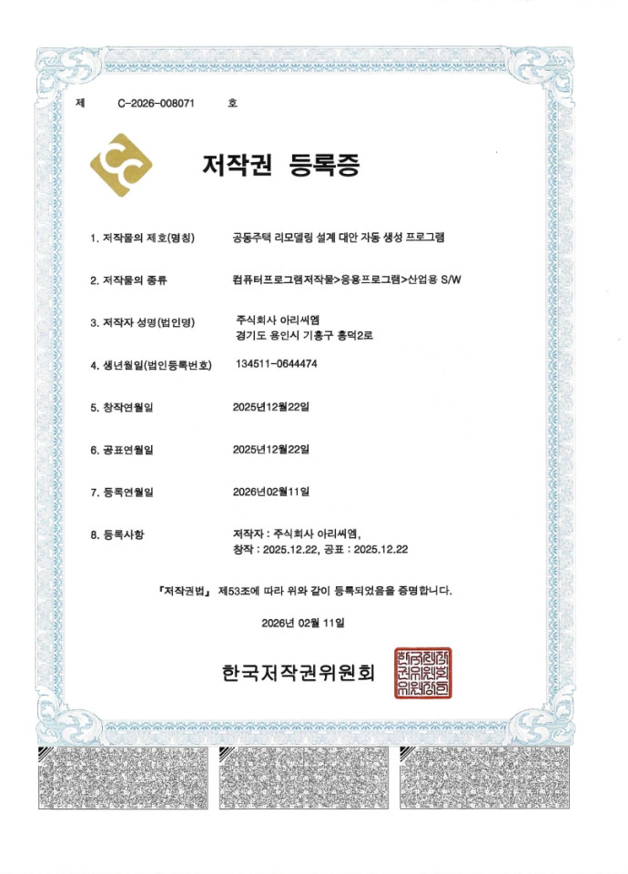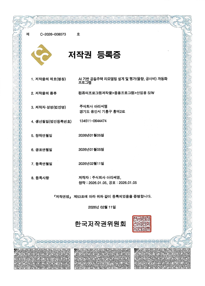 (S/W등록) AI기반 공동주택 리모델링 설계 및 평가(물량,공사비) 자동화 프로그램