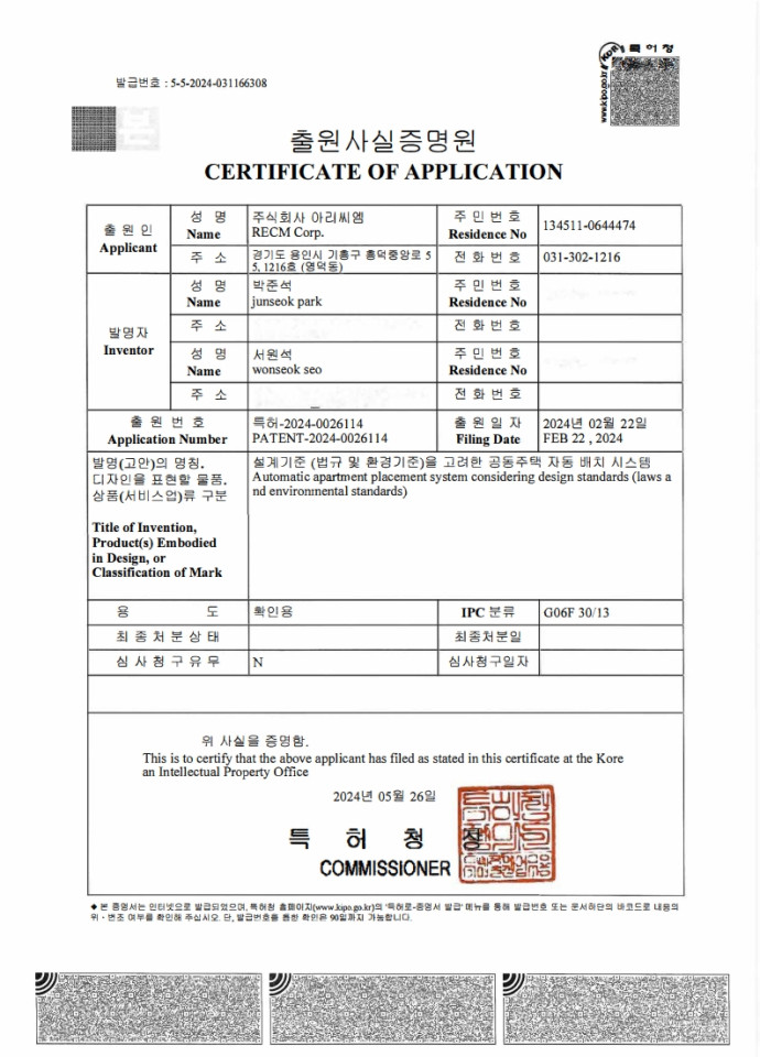 (특허출원) 설계기준(법규 및 환경기준)을 고려한 공동주택 자동 배치 시스템