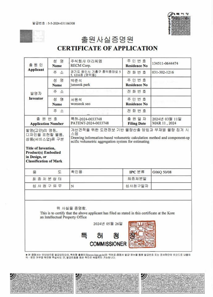 (특허출원) 개산견적을 위한 도면정보 기반 물량산출 방법과 부재별 물량 집계 시스템
