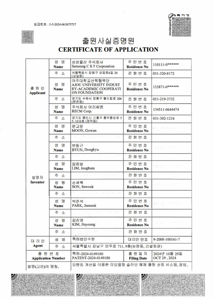 (특허출원) 모멘트 계산을 이용한 리모델링 슬라브 해체 물량 산정 시스템, 방법 및 상기 방법을 실행시키기 위한 컴퓨터 판독 가능한 프로그램을 기록한 기록매체