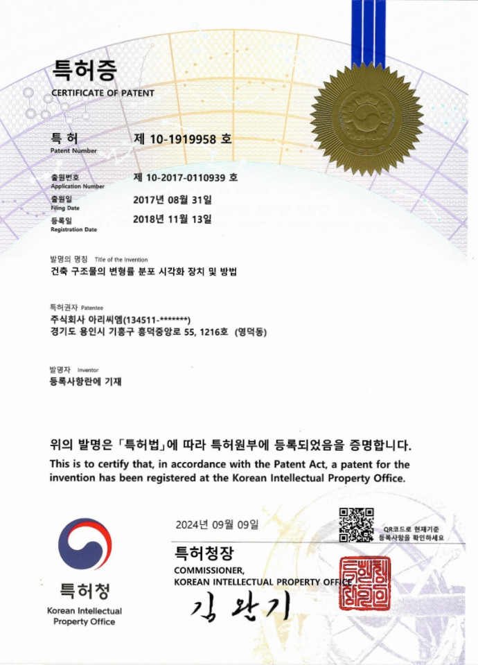 (특허등록) 건축 구조물의 변형률 분포 시각화 장치 및 방법